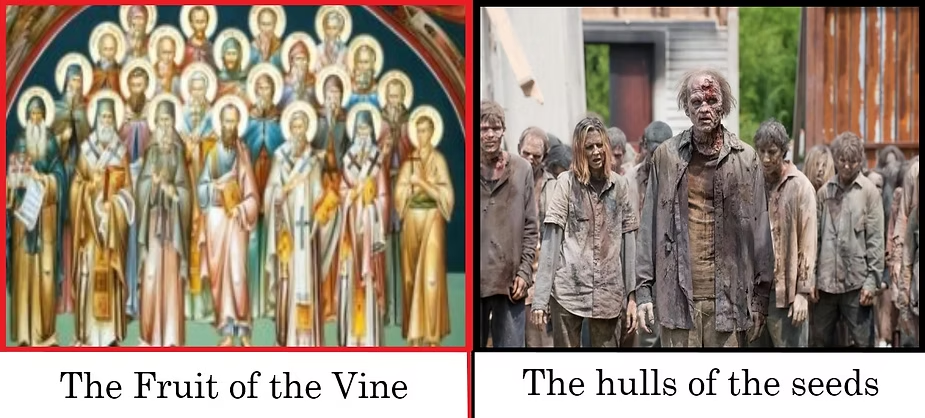 From seeing that deeper meaning about “truly dying” [“men apollymenois”], the “word” or “message” [“logos”] of the “cross” [“stauros”] is that of being “an upright stake.” While a Roman crucifix is likewise placed upright in the ground, it is first laid down on the ground, so a living body can be nailed to it. As an upright stake in a vineyard, the grapevines have support that allows full clusters of juicy grapes to hand from the cross members of the stake, without touching the ground and becoming ruined. This means becoming the good fruit of the vine [such as Paul] are those who offer salvation, by becoming another upright stake that supports the good fruit of the holy vine of God and Christ. This meaning can also be found reflected in the Genesis reading of the past Sunday, when God told Abram “walk with my face [the face of God] and be blameless], such that Abram lived his entire life as a “cross” that was upright.