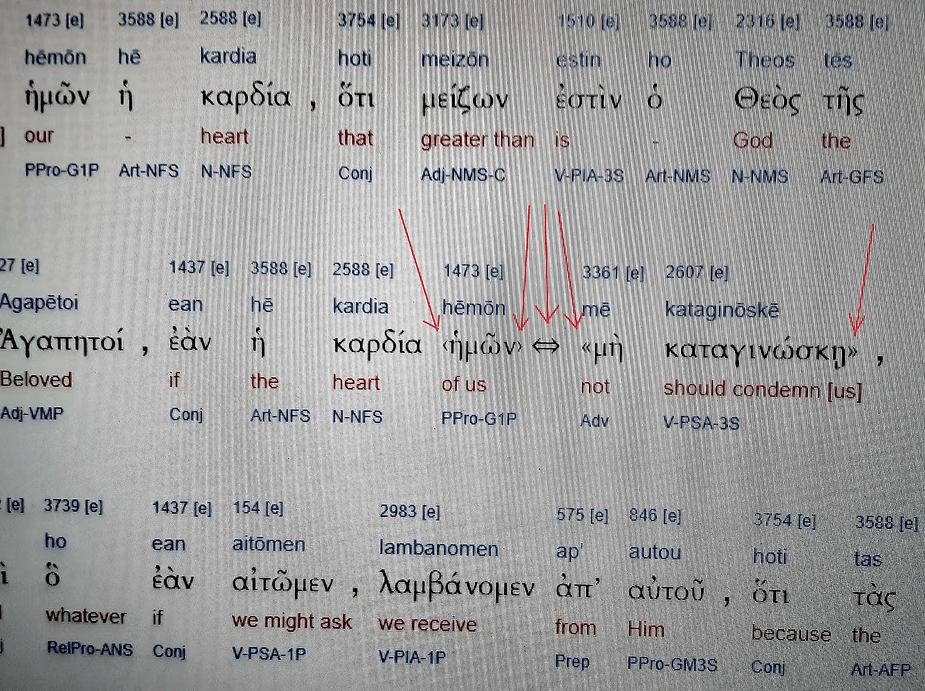 1:10”kai ho logos autou ouk estin en hemin” – “and this word of this not exists in us”