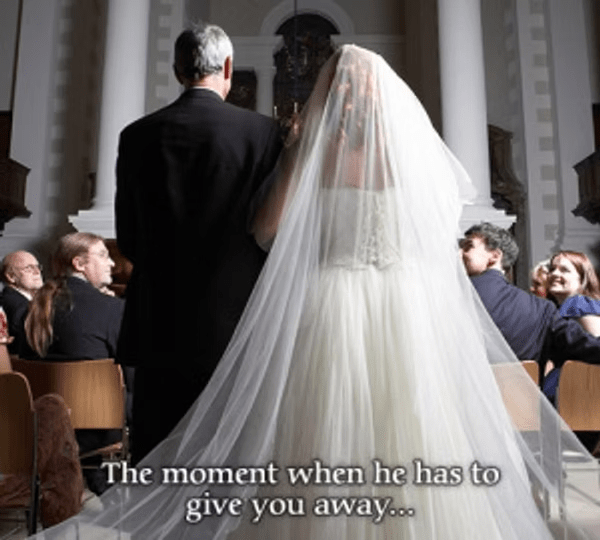 Priest: Who gives this woman to be married to this man? Father of the bride: I do.