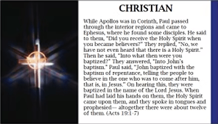 Like the Christians in Ephesus, they lean heavily on their baptism by water as proof. In some way this event took place at a point in their lives (sprinkled as a baby or dunked in a baptismal pool as a youth or adult), and since they have spent some time listening to sermons, maybe attended a Bible study class a few times, and maybe have actually opened a Holy Bible and read a few passages from time to time (without being commanded to do so by a pastor, during a Bible-pounding sermon). Still, none of them have ever been touched by someone with the Holy Spirit within. None of them have become transformed to the point of touching others and passing on the Holy Spirit.