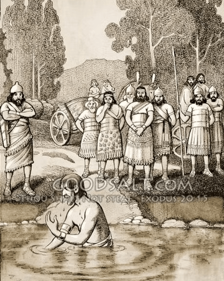 The name “Jordan” means “descending” or ‘descender,” from a root infinitive “to descend.” This must be known, as Naaman was not so much told to go to a specific river and baptize his flesh with water than originated from the north, passing through Syria. Rather, his soul was told to take his body of flesh that influenced his soul and “descend” into self-sacrifice. This makes this command be equal to Jesus having to die on the cross and then “descend” into death for three days, before he could ascend resurrected. The number “seven” is then symbolic of the ”completion” that comes from the “seven” days of Creation. The soul of Naaman was then told to “descend” from the influence of his flesh, so he died of self, until his soul had returned to be one with Yahweh, where “completion” would manifest the soul of Yahweh’s Son within his soul, as his Lord and Savior (“Yah Saves” is the meaning of the name “Jesus”).