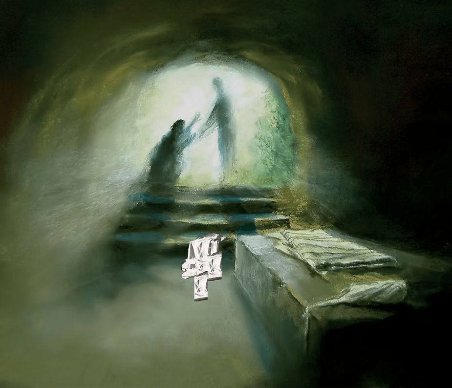 I have purposefully delved deeper into this first verse of John’s reading because it is important to see how this one verse more closely aligns with that which Mark wrote [as well as Matthew and Luke]. One needs to realize that this story [by all four Gospel writers] was written well after the event of Jesus being found not in the tomb. I will now more quickly address the rest of this reading.