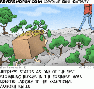 Jesus said, “If your hand causes you to stumble, cut it off; it is better for you to enter life maimed than to have two hands and to go to hell, to the unquenchable fire. And if your foot causes you to stumble, cut it off; it is better for you to enter life lame than to have two feet and to be thrown into hell. And if your eye causes you to stumble, tear it out; it is better for you to enter the kingdom of God with one eye than to have two eyes and to be thrown into hell, where their worm never dies, and the fire is never quenched.” Here, Jesus three times used a form of the Greek word “skandalizó”: “skandalisē” once; and “skandalizē” twice.
