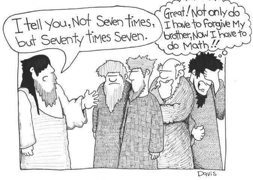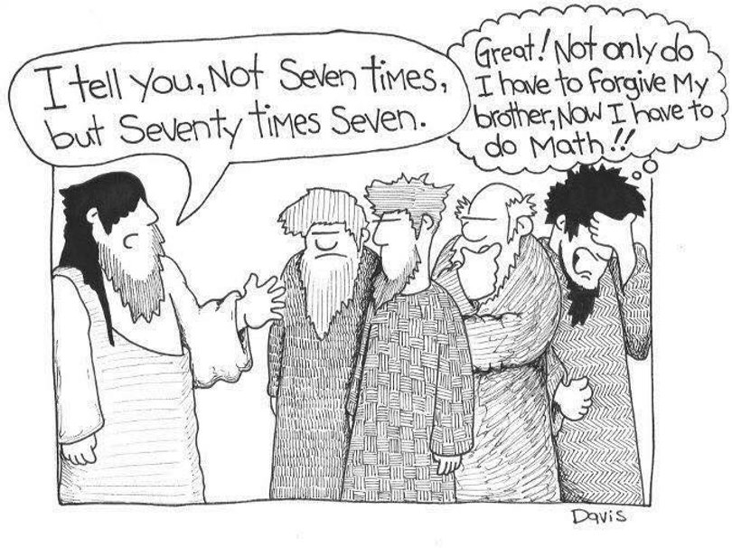 “Peter came and said to Jesus, “Lord, if another member of the church sins against me, how often should I forgive? As many as seven times?” Jesus said to him, “Not seven times, but, I tell you, seventy-seven times.
