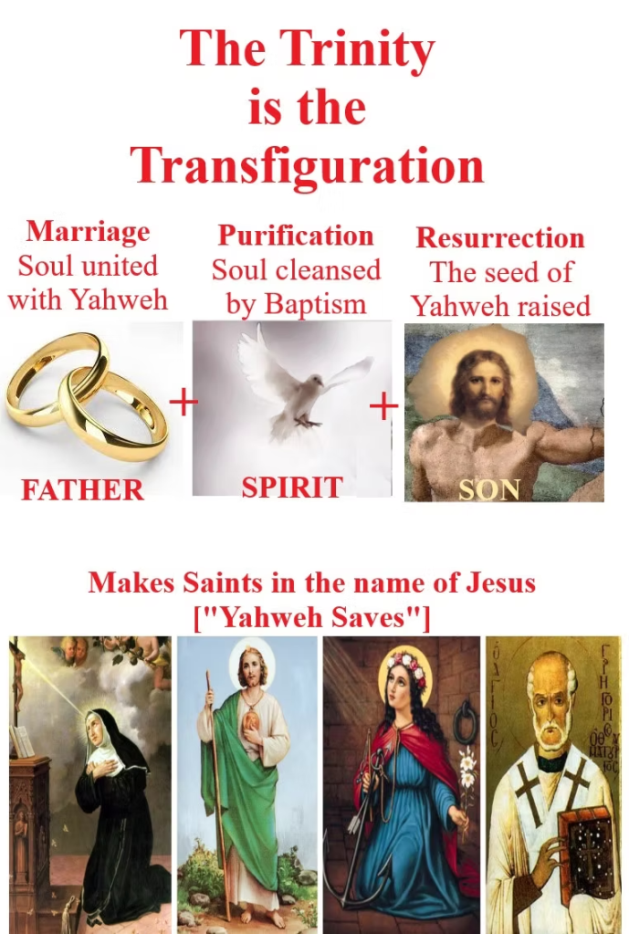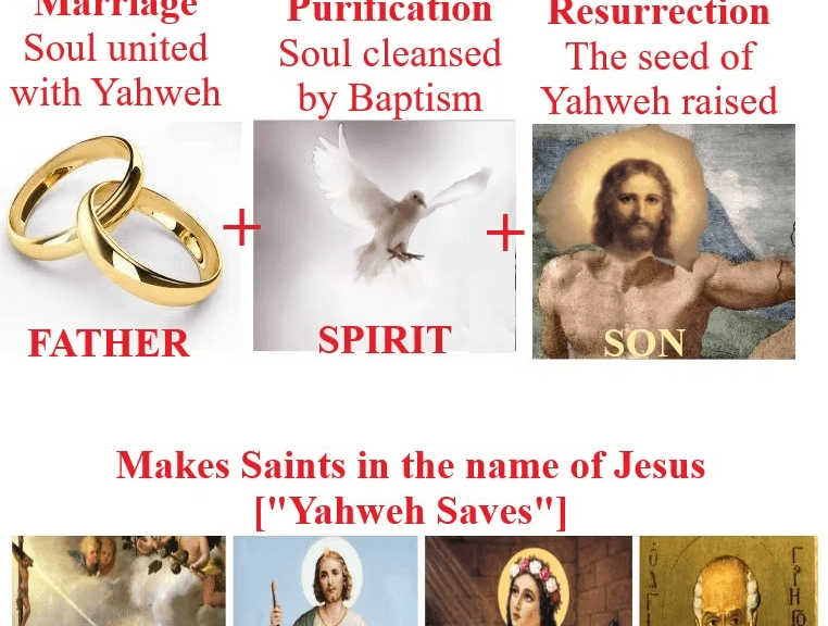 As a reading selected for Trinity Sunday, it is important to understand why “Trinity Sunday” always follows “Pentecost Sunday,” in the lectionary cycle. Christians that know the “Trinity” say it is the threesome that is Father, Son, and Holy Spirit. In reality, it is a foursome, where the word translated as “Holy” means “Sacred” or “Set apart by God.” Such a designation is not for a “Spirit.” If it were, then we would all recite: “Holy Father, Holy Son, and Holy Spirit.” Since we do not do that, the immediate understanding is the “Spirit” is like the “Father” and the “Son,” with all being spiritual in divine essence. This means the “Holy” designates a “Saint,” who has become such by the “Trinity” coming upon that soul in a body of flesh. The “Father” represents marriage of Yahweh to a soul. The “Son” represents the resurrection of Jesus’ soul within a soul; and, the “Spirit” is the Baptism that cleanses a soul of sin, making it prepared to be the wife of Yahweh and the mother. Nothing heavenly can be deemed “Holy,” as all are in a spiritual realm that cannot be judged by human beings, based on physical deeds. Thus, only a soul trapped in a body of flesh can be made to be “Holy,” by the presence of the Trinity of heaven.